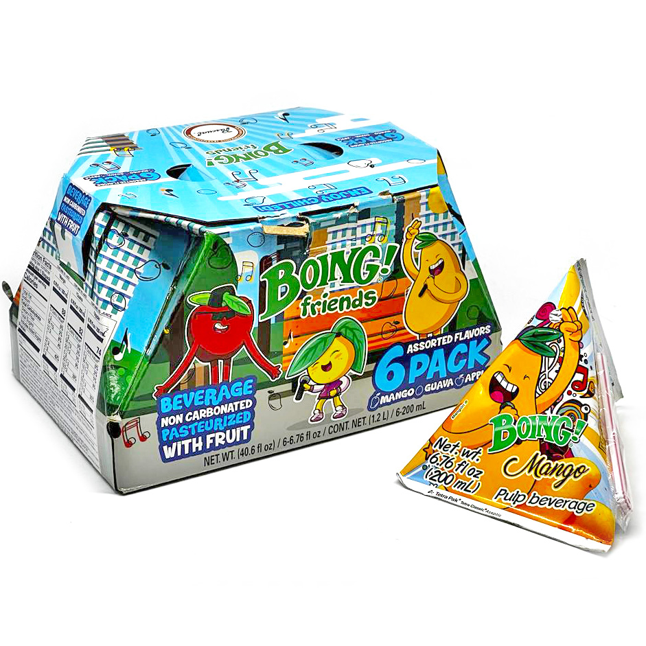BOING TRIANGULO 6 PACK 3/6.76 OZ SKU: DR-BOIN-109 Categories: BOING, DRINKS Related products TROPICAL BANANA 6/3 LT-TPDRINKS, OTHERS DRINKSRead more TROPICAL SODA BANANA 24/12 OZDRINKS, OTHERS DRINKSRead more TOPO CHICO MINERAL WATER 24/12 OZDRINKS, OTHERS DRINKSRead more NATURAS JUGO PINA 24/11.3 OZ-TPDRINKS, NATURASRead more LA LUPITA MICHELADA EL TOXICO 24/32 OZDRINKS, LA LUPITA MICHELADASRead more